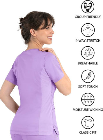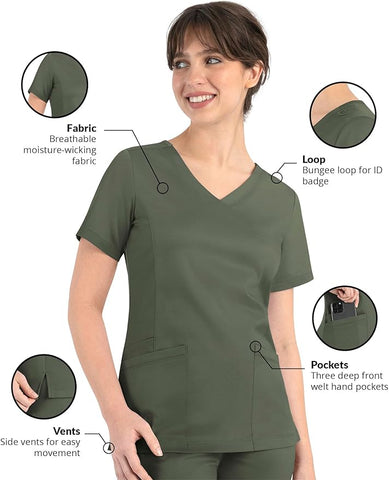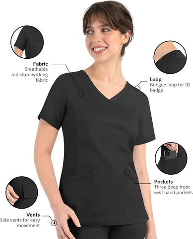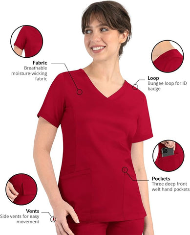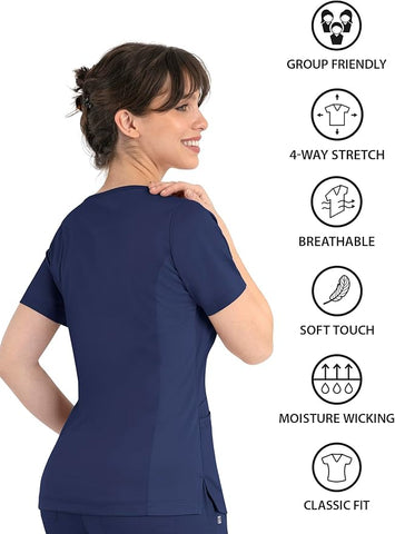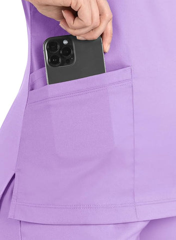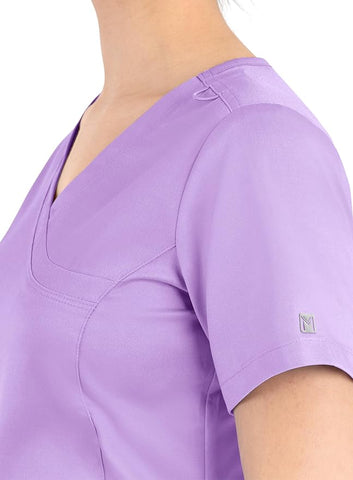 Maevn Matrix Women's Curved Mock Wrap 3 Pockets Top