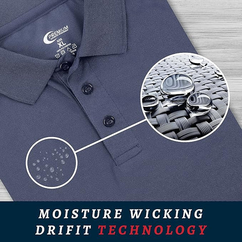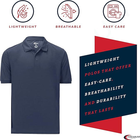 Premium Wear Men's Navy Polo Shirt High Moisture Wicking Dry Fit Performance Short Sleeve